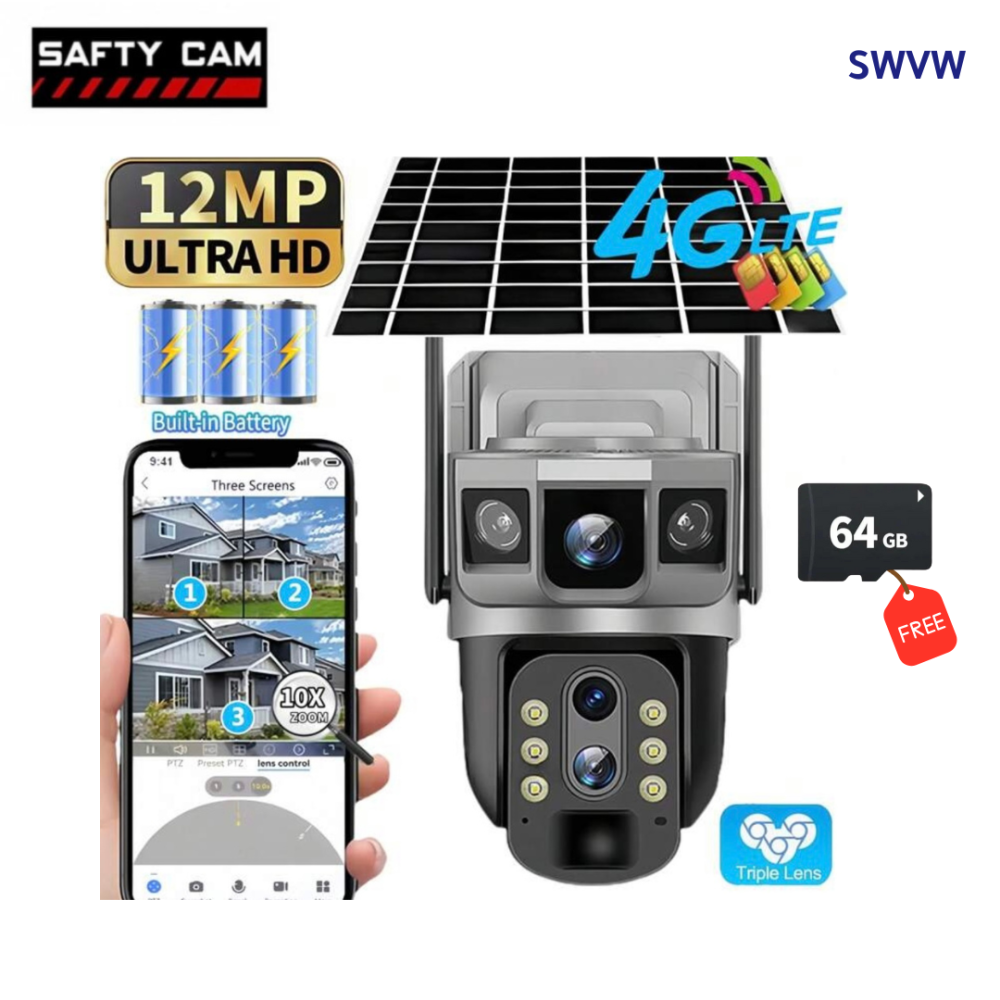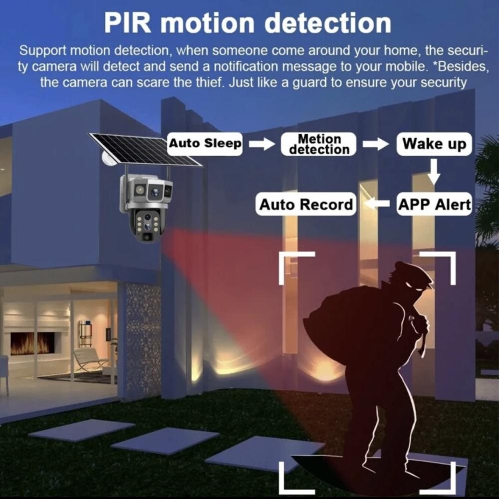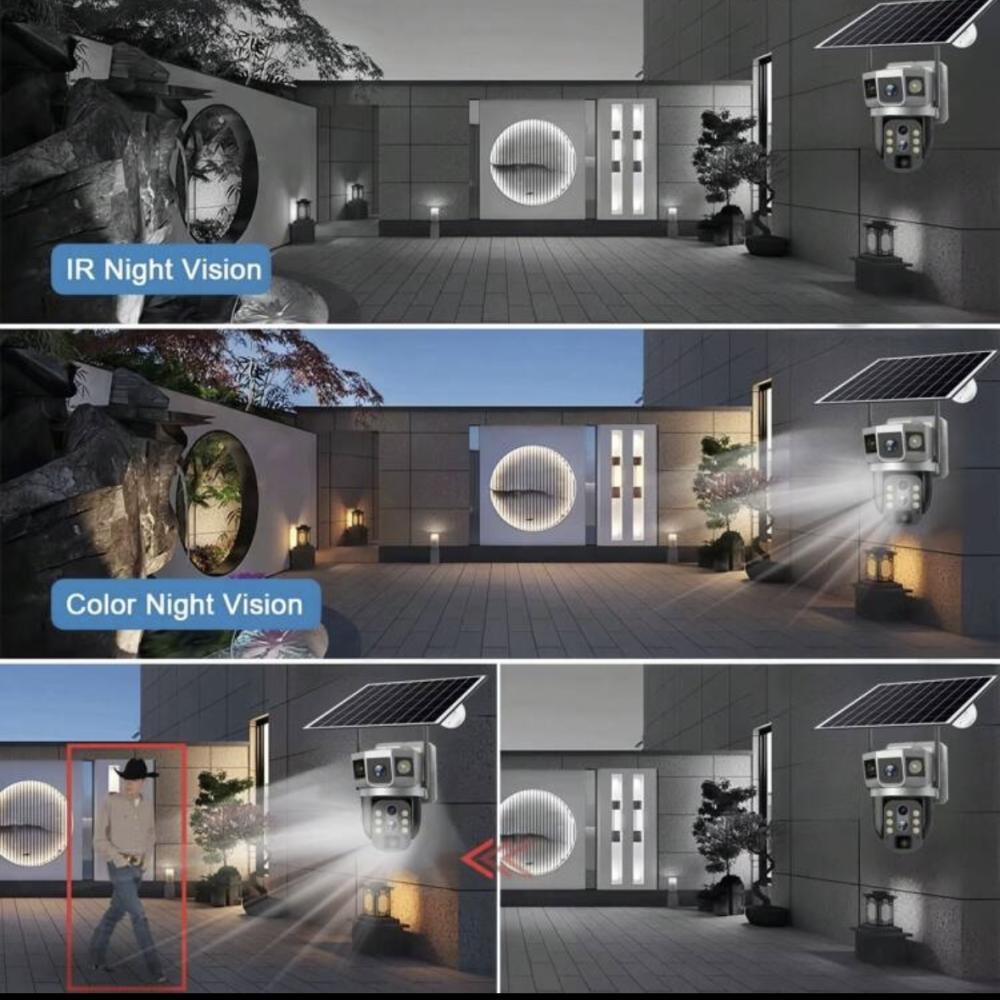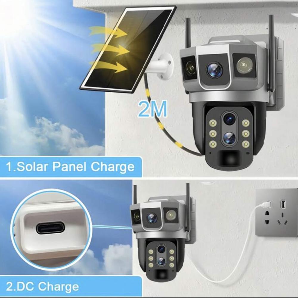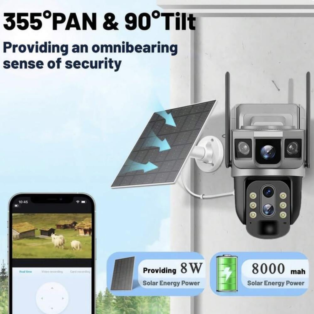 احمِ ممتلكاتك بأعلى مستويات الأمان مع كاميرا مراقبة طاقة شمسية بجودة 1080p بـ 3 عدسات (ثابتة ومتحركة)